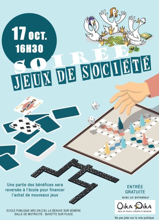 Soirée jeux de société organisée par l'APE à l'école le vendredi 17/10 à partir de 16h30
